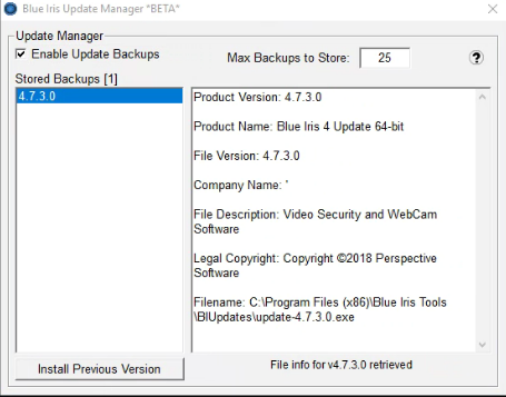 - Keep previous versions of Blue Iris