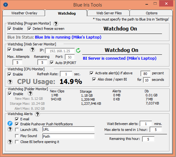 - Monitor Blue Iris' web server. If BIT cannot connect, activate alerts
