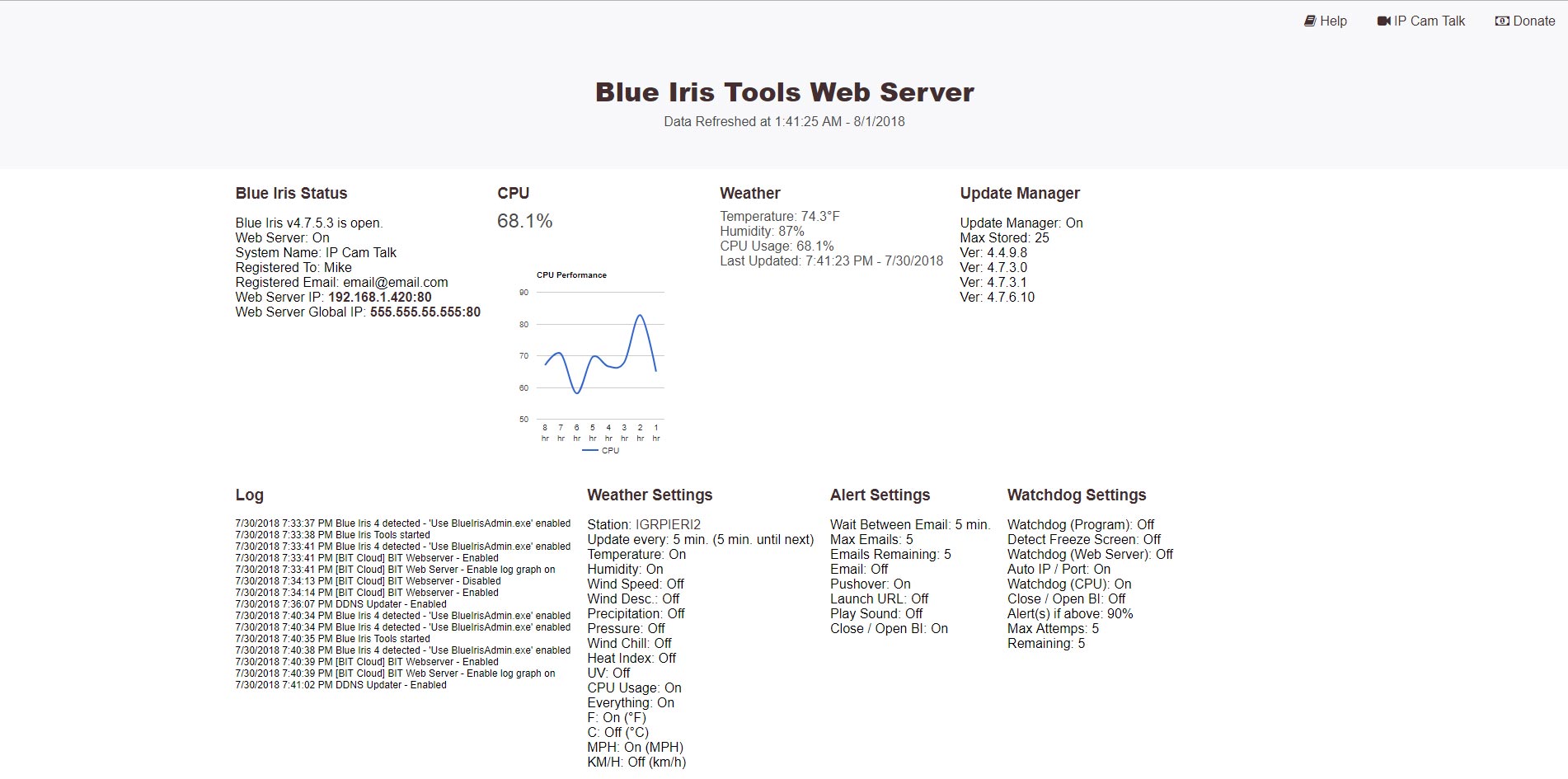 Here are some screenshots of Blue Iris Tools.
