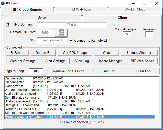 - BIT Cloud Remote - Connect to BIT from another remote BIT to view / manage settings and control BIT / BI, etc.