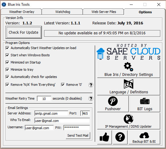 - Notifications - Get notified if BI crashes via e-mail, push notifications via Pushover (download BIT icon here), by playing a sound, pinging / launching a URL.