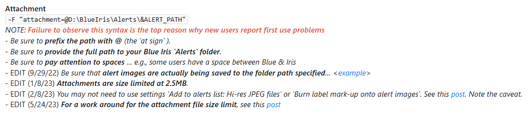 Is it possible that the image size has been borderline and today is too large? ... when I get a minute, I'll check the API for any changes.Using the curl method. Have not changes anything regarding how this works in forever. It just stopped working all of a sudden. I can see BI+DS are processing the alerts as normal. It's not like that other problem when DS times out and therefore no alert is sent.