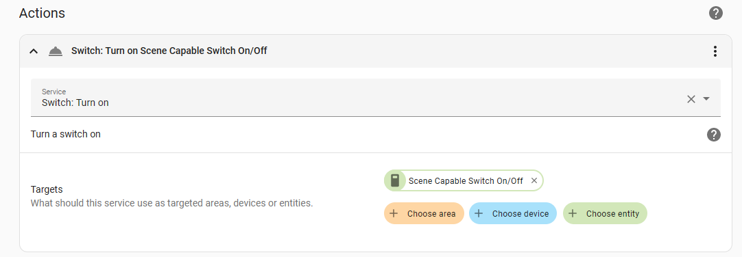 and then an "Action" (turn on a Z-Wave switch in this case):