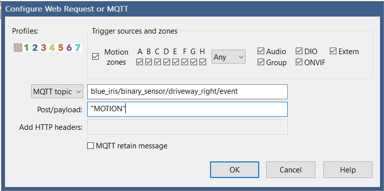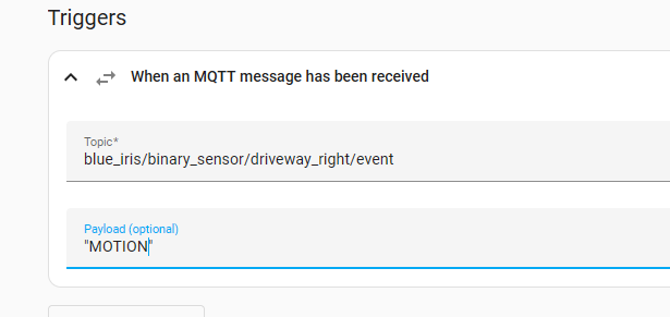 "driveway_right" camera. Note that the text for the MQTT topic and payload is just something I made up, but it has to
